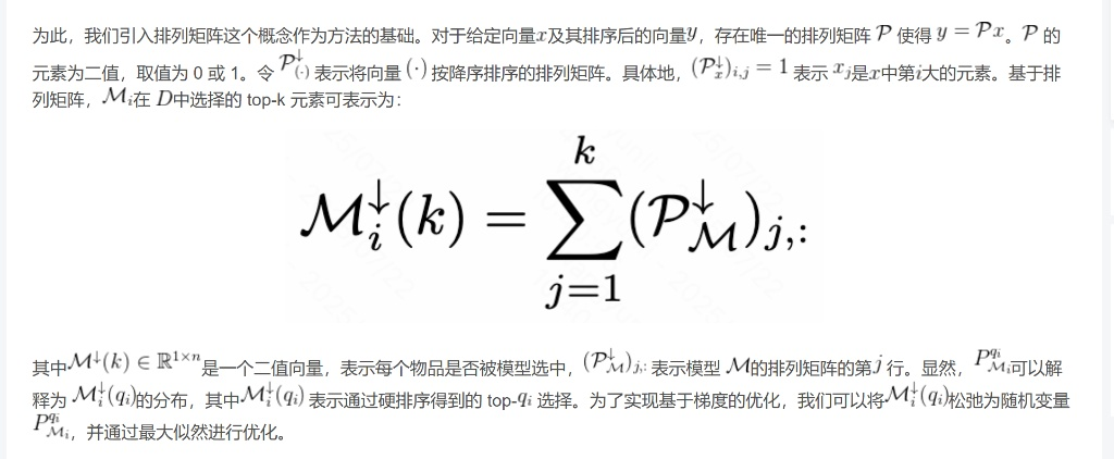 文本里说:“$(\mathcal{P}x^{\downarrow}){i,j}=1$ 表示 $x_j$ 是 $x$ 中第 $i$ 大的元素”。